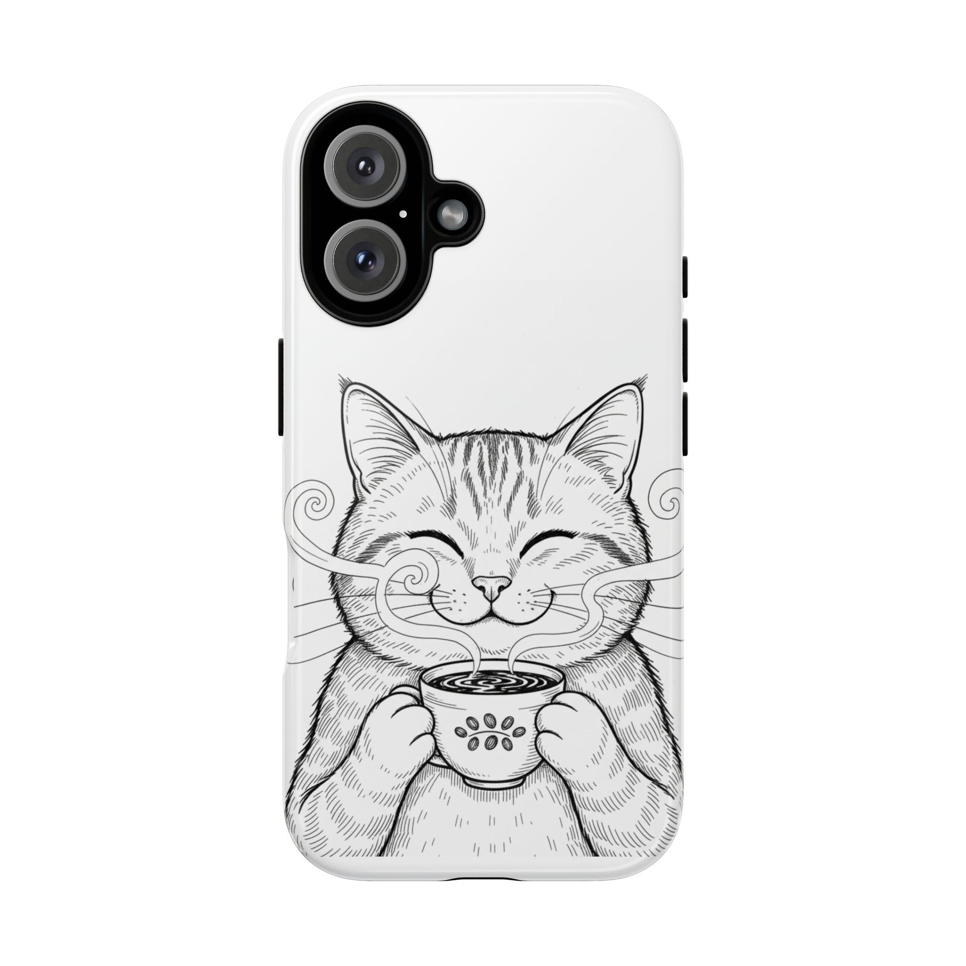 Meet the tough phone case that protects your device with the same confidence this cat sips its morning brew. The Coffee Cat Tough Case is built for serial phone-droppers, chronic over-caffeinators, and anyone who wants durability without ditching personality.